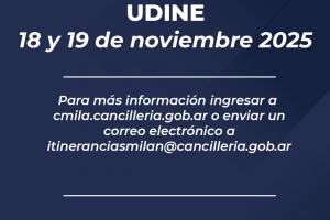 Se informa que los días 18 y 19 de noviembre de 2025 se realizará una itinerancia consular en la ciudad de UDINE destinada a los connacionales residentes en la Región de Friuli Venezia Giulia y zonas aledañas.